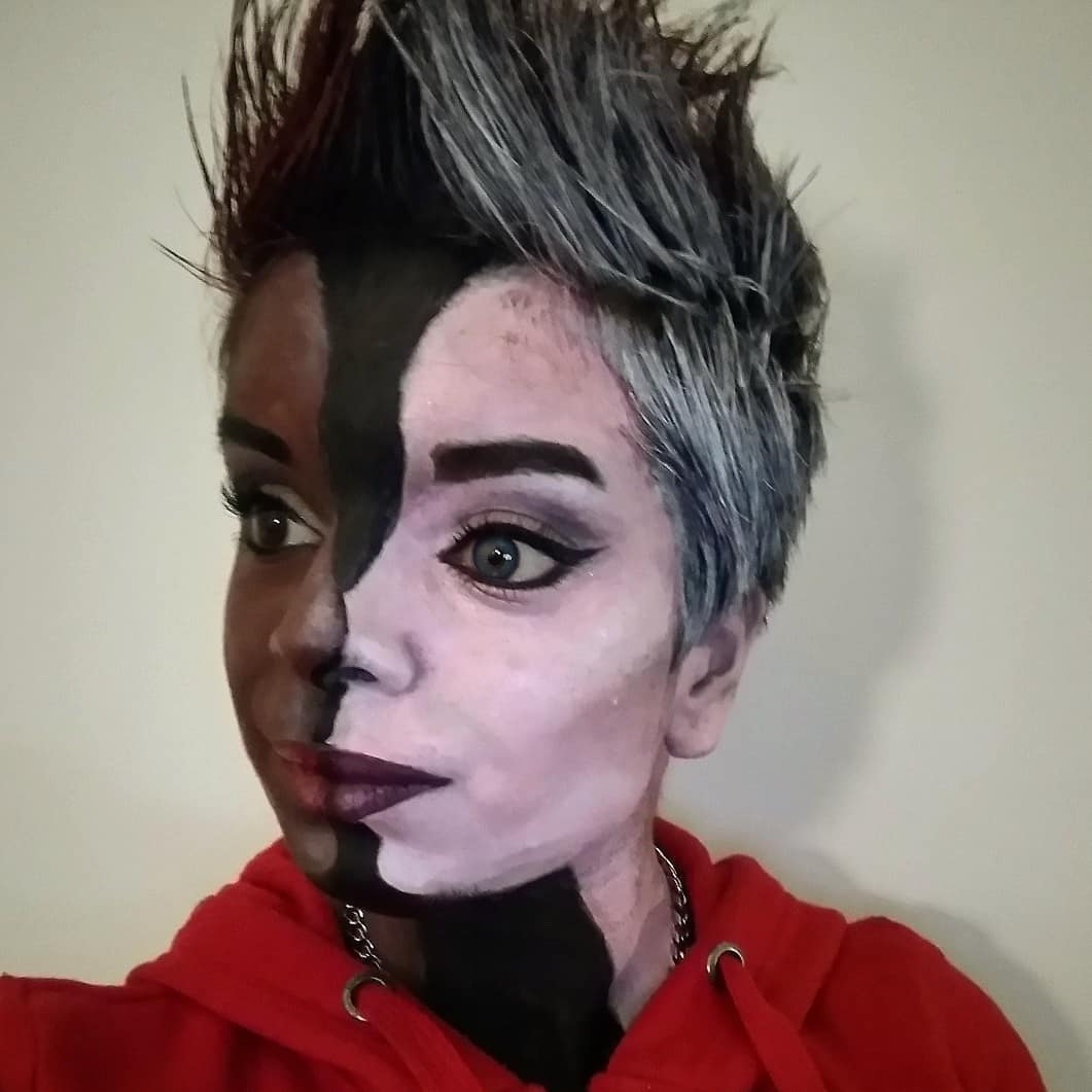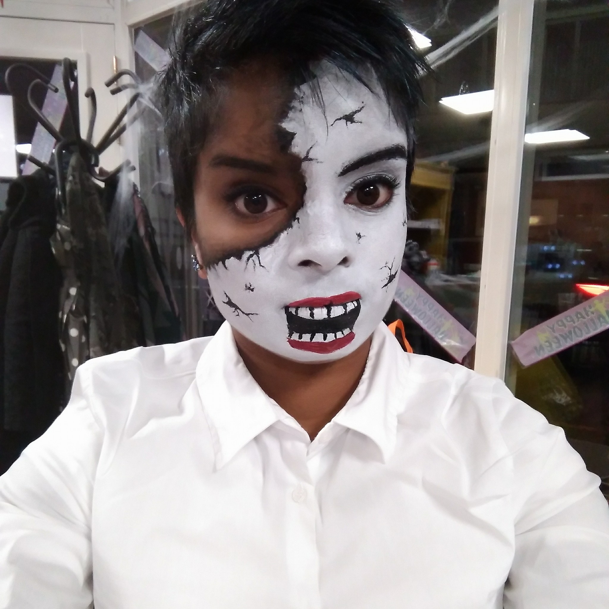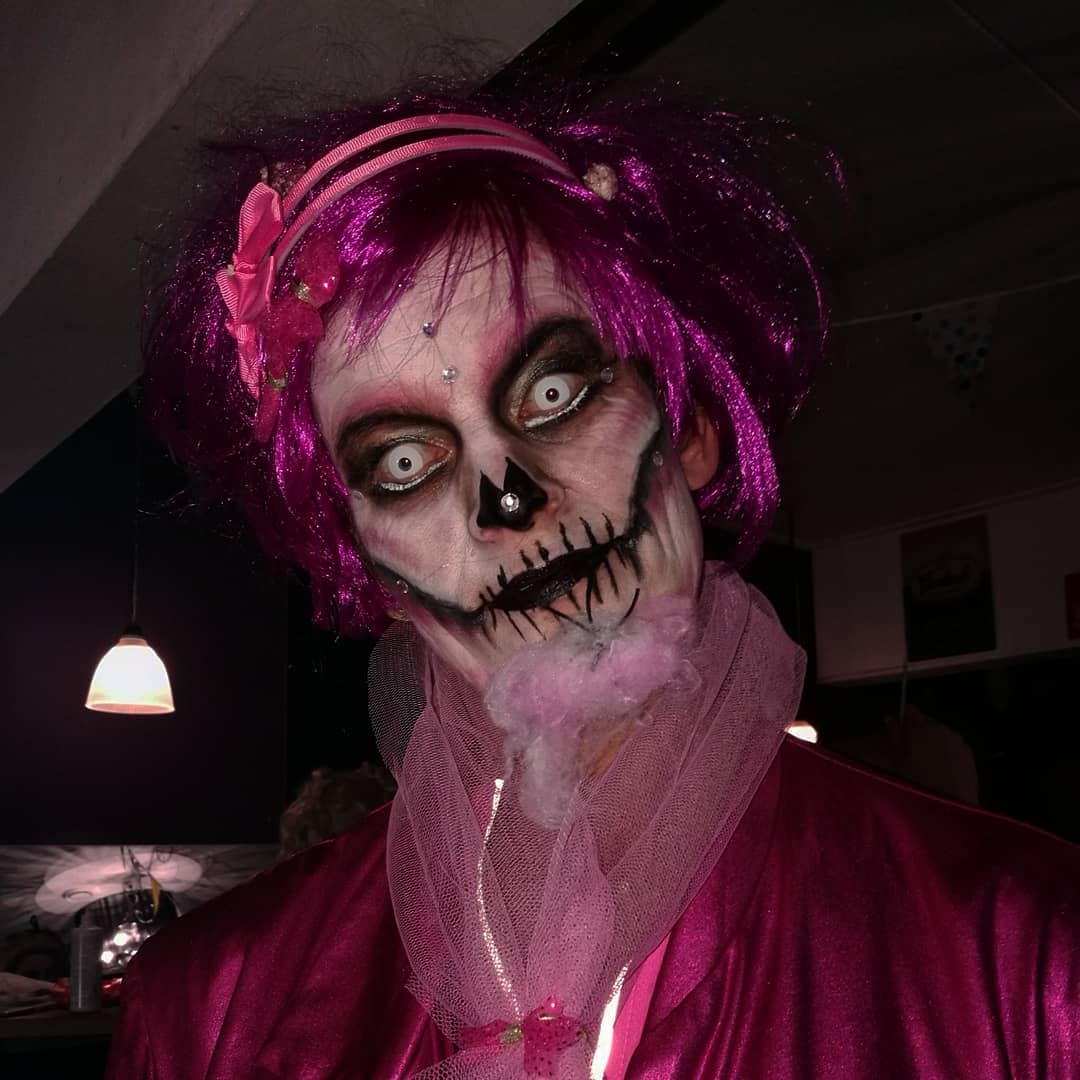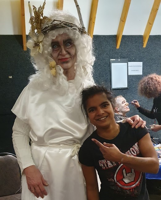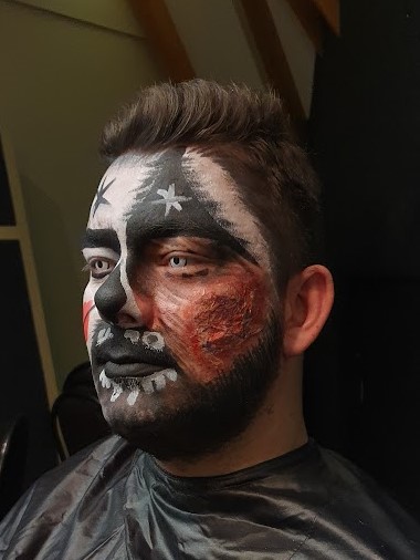 In mijn vrije tijd ben ik graag bezig met grimeren. Dit doe ik voor mijzelf ter ontspanning, maar af en toe ook in opdracht bij spooktochten. (klik op de foto’s voor een vergroting)
